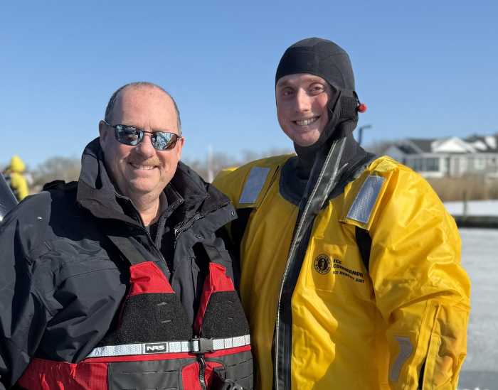 Ocean Beach Fire Department firefighter Kelly Becker, Ocean Bay Park firefighter Steve Jaffe, and Ocean Beach Lifeguard Lucas Becher (also a Bayport FD responder) from Fire Island attended this advanced class this weekend. They practiced the skills learned in the classroom under extreme ice and cold conditions. All attendees agreed that the cold was tough, but they were glad to train in case these skills are ever needed. During the winter months, Fire Island and mainland departments often rely on each other for manpower and equipment. It’s important to train together to respond effectively. Becher, Becker, and Jaffe now have their advanced ice rescue training and some good stories to share during the halftime show and while enjoying some hot wings.