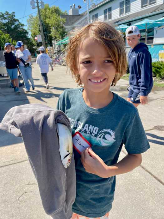 The Kismet Kids Snapper Derby was a big success on August 22, despite the wet weather brought by Hurricane Erin. The rain date was used, pushing everything back by only 24 hours. Fifty-eight children participated. While only two fish were caught on derby day, raffle sponsors, West Marine, the Boatel, Bar Aquatic, Nalu, and beach balls donated by the Agency made all the kids feel like winners. Congratulations to Adam for catching the first-place fish, and Nicholas for second place. The Kismet Inn provided the celebration lunch of hot dogs and fries, and the Kismet Market contributed ice pops.