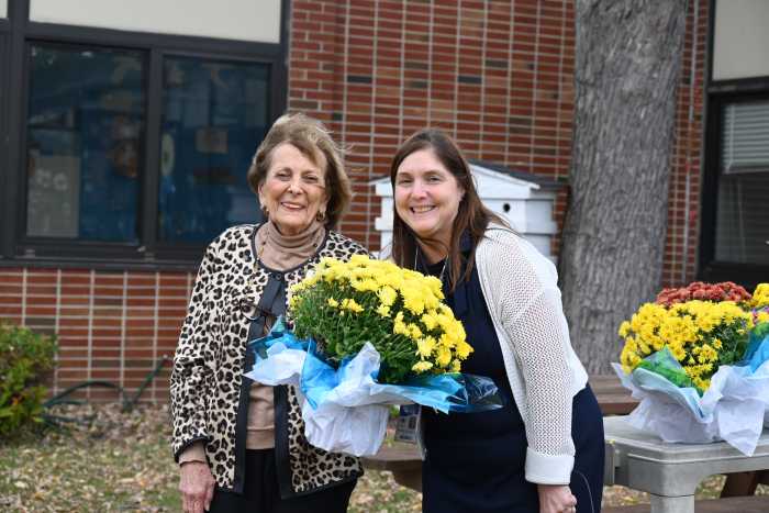 Oquenock Elementary School in the West Islip Union Free School District held a dedication ceremony in its outdoor café to celebrate the installation of the school’s new buddy bench, generously donated by the West Islip Retired Teachers Association (WIRTA) in honor of former West Islip teacher Simonne Harkavy. Twelve WIRTA members were in attendance to join in the celebration. During the ceremony, Oquenock Elementary School Principal Amanda Harvey also honored New York State United Teachers’ Retiree Recognition Day and presented the attending members with flowers.