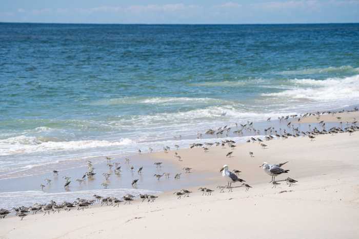It’s spring, which means the Atlantic Flyway, a bird migration path, is buzzing with birds on their way to our neck of the woods. Piping plovers (Charadrius melodus) utilize this flyway to lay nests on our shores every spring, which is why parts of local beaches are fenced off throughout the summer. It’s not uncommon for people to point to a group of birds and say, “There’s a ton of plovers right there! Why does the beach need to be closed?” As a former “plover monitor,” I often see people mistake the wrong birds for piping plovers.