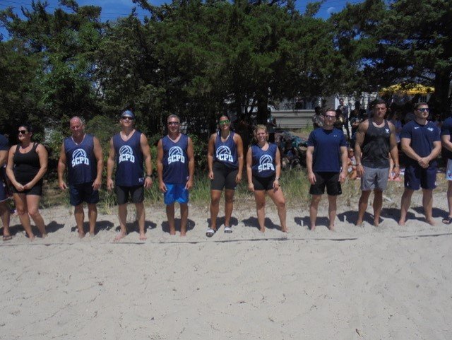Suffolk County Police Department takes these games seriously enough to dispatch the Emerald Society Pipes and Drums Marching Band. Cherry Grove has cheerleaders, singers and other entertainers. The August 2, 2023 games were one more step in this proud tradition. The tournament is played in three games and the skills of both teams is always too close to call. This year the Copettes prevailed, with the final score being 23/21. Stay tuned for additional coverage by veteran Fire Island News columnist, Robert Levine. In the meantime, enjoy the photos!